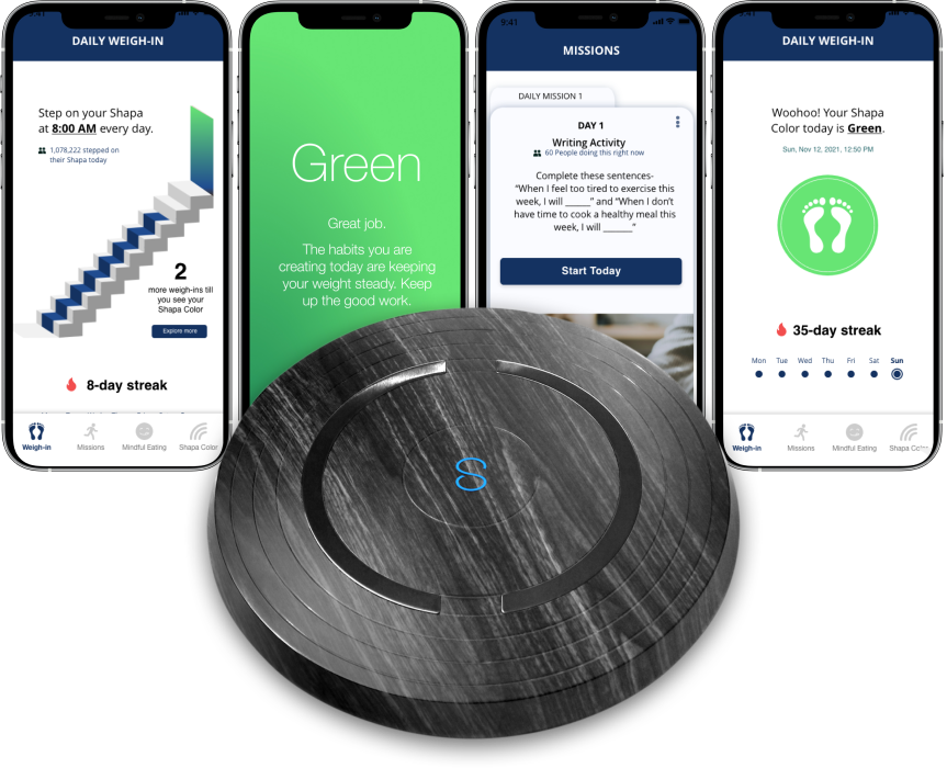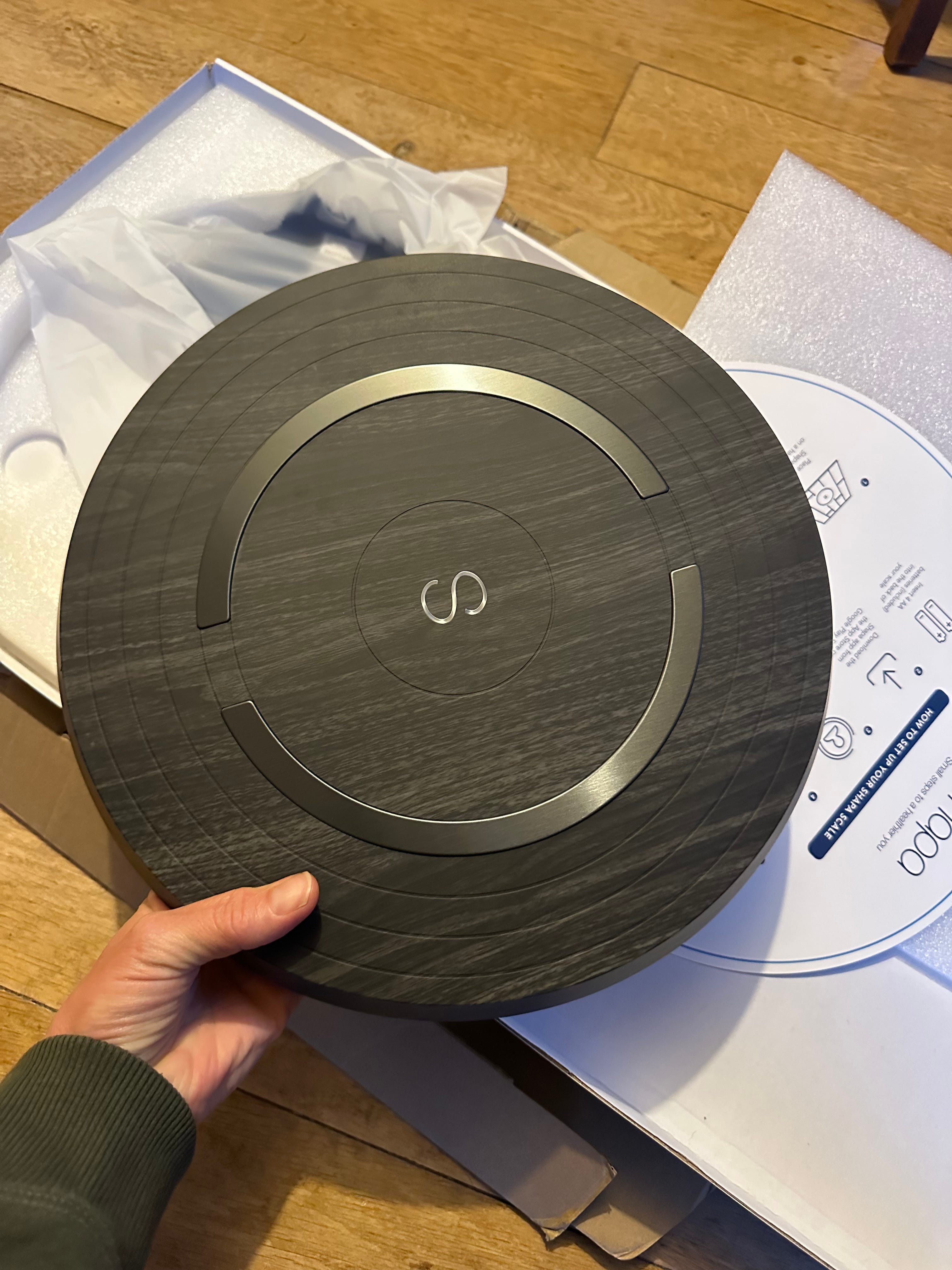 This is a numberless scale. It uses 5 different colours to let you know your progress, instead of you seeing a number. It’s intelligent, works with an app on your phone and also learns your fluctuations over the month (I think) so it can account for, and let you know your progress “…while accounting for your personal patterns in weight variance”. I think it also monitors body composition/body fat percentage too.